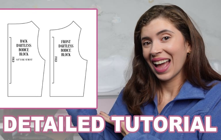 Step-by-step guide to drafting a dartless bodice block. Video tutorial included.